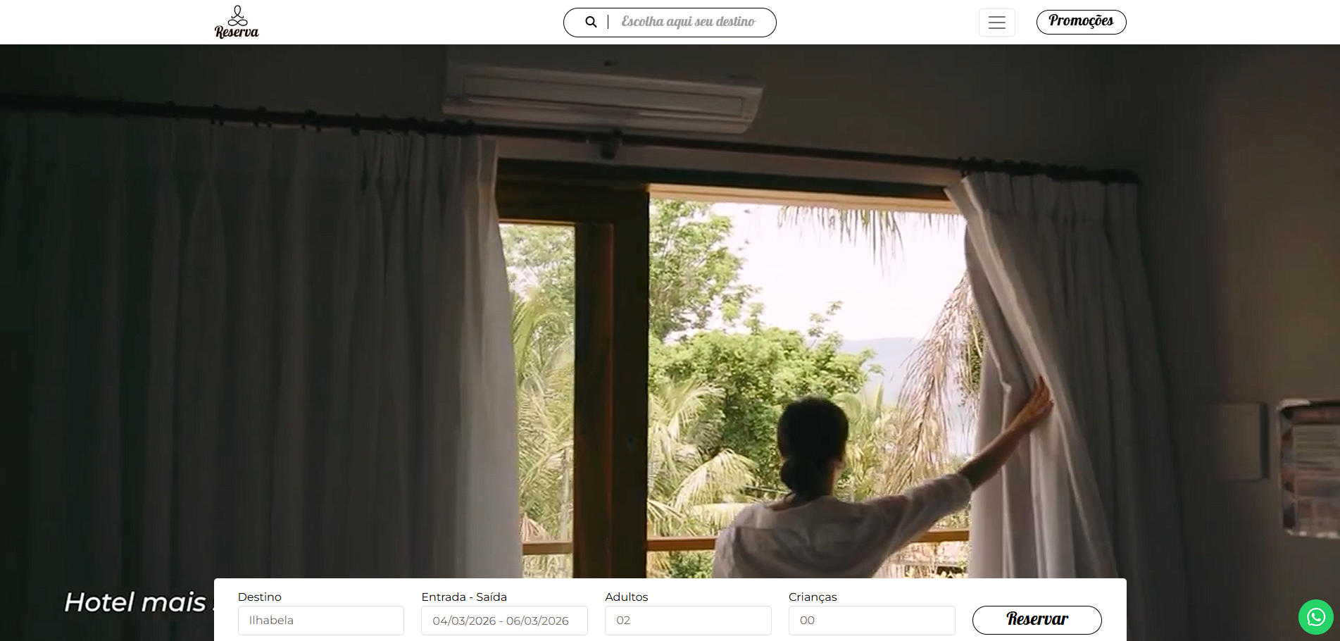 O site terá uma Barra de Reservas no site, que é integrada com o Motor de Reservas* que você já utiliza, apenas informando o link e ID.